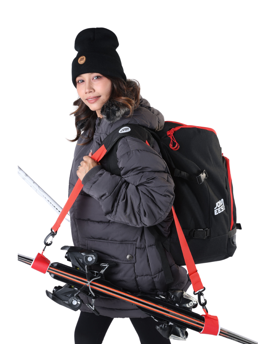 If you invest in quality boots you will want to have a smart way to transport them. That is usually not in general baggage on an airplane. The Self Starter allows you to easily carry your boots, helmet, goggles, gaiter, gloves, pants and more. The sternum clip will help distribute the weight. You land ready to go! and your gear is always dry and well protected.